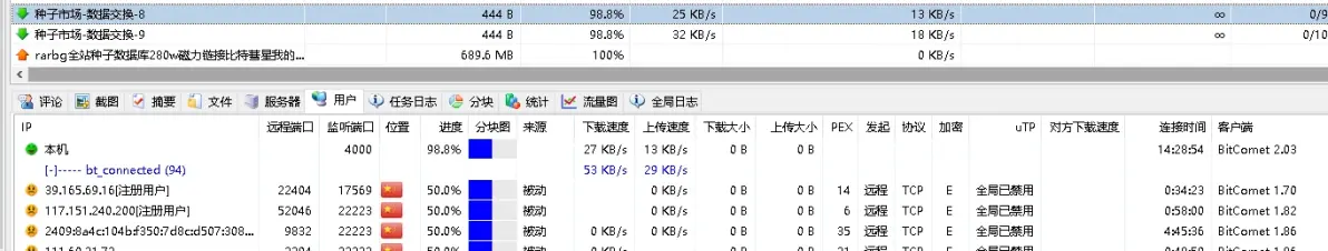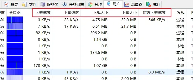 - 对方下载速度: 对方下载这个任务时的总速度