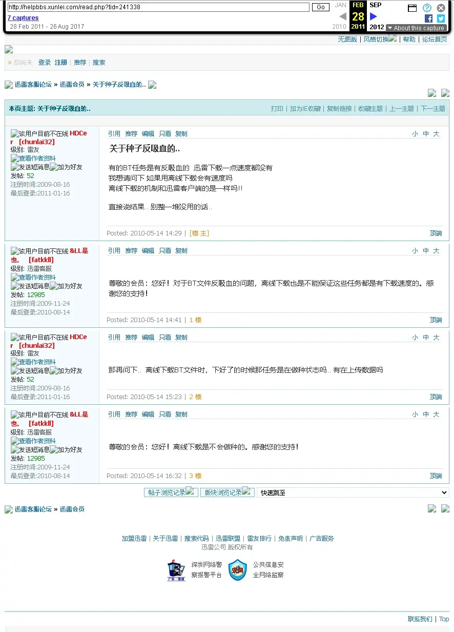 - https://web.archive.org/web/20110228194538/http://helpbbs.xunlei.com/read.php?tid=241338