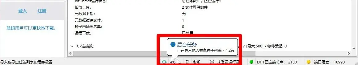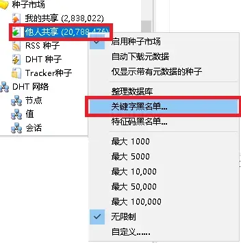 答: 若比特彗星检测到自己运行在国区 会自动隐藏种子市场功能