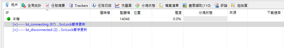 比特彗星-常见问题比特彗星常见问题-用户列表显示问题比特彗星常见问题-用户列表显示问题 2023.08.10 问: 用户列表不刷新了/一片空白 答: 应该是按到了键盘上的 Scrll Lock 键 即滚动锁定键 再按一次即可恢复刷新 其一般用于 暂停列表更新以方便查看用户信息 参考: cometbbs-求助,bt任务用户列表空白,或者显示暂停刷新!! cometbbs-请问没有用户哪来的上下载量?附图 百度百科-滚动锁定