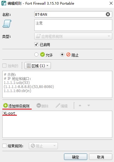 名称可自定义 这里使用 “XL-port” 操作为 阻止