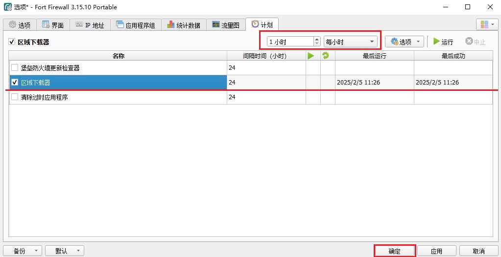 勾选区域下载器 时间设置为1小时 确定以保存规则