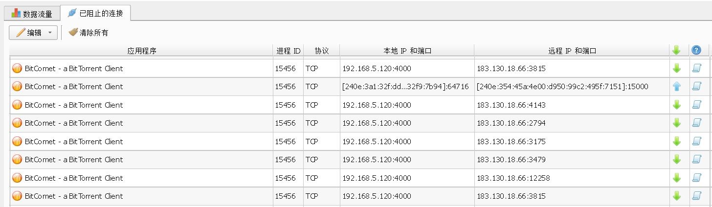 托盘》统计数据》已阻止的连接