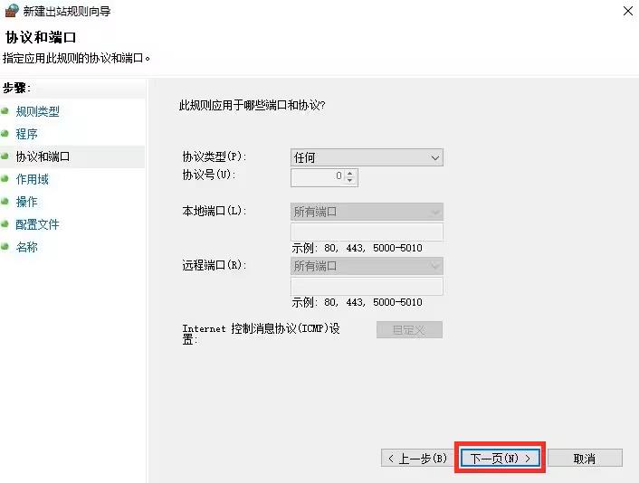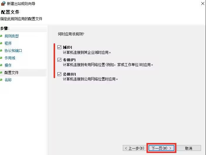 作用域 在远程IP中选择下列IP地址 并点击添加