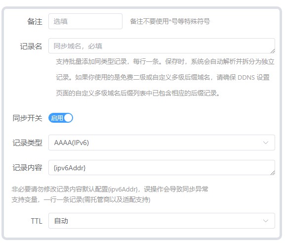 现在DDNS模块的配置逻辑与WEB服务更接近 同时支持了更多的记录类型