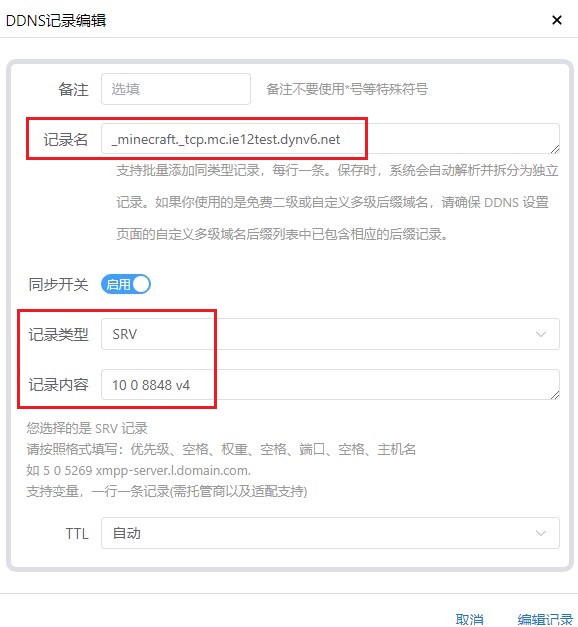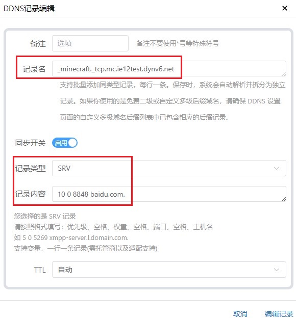 相比起TXT记录SRV记录要稍微麻烦一点 主要是在格式方面