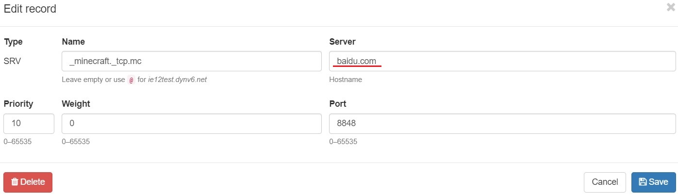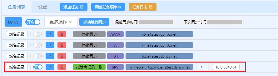 此处使用dynv6进行演示 值得注意的是使用lucky在dynv6上更新 SRV记录有一个"小特性"