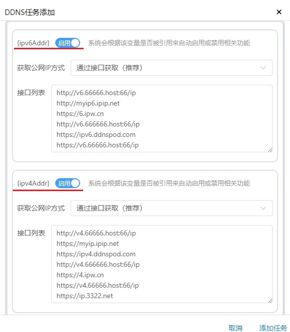 打开 {ipv6Addr} 和 {ipv4Addr} 两个变量的开关