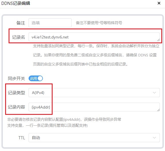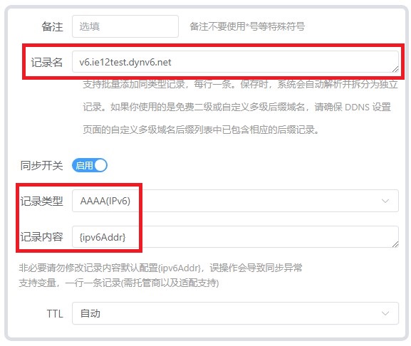 主机名这一项只能使用该主域名下的子域名 比如要以 ie12test.dynv6.net结尾