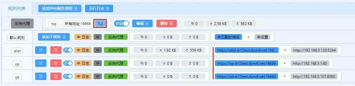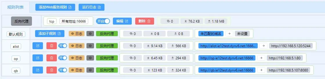 在完成了(动态)域名设置的工作后我们就可以开始配置反向代理规则了
