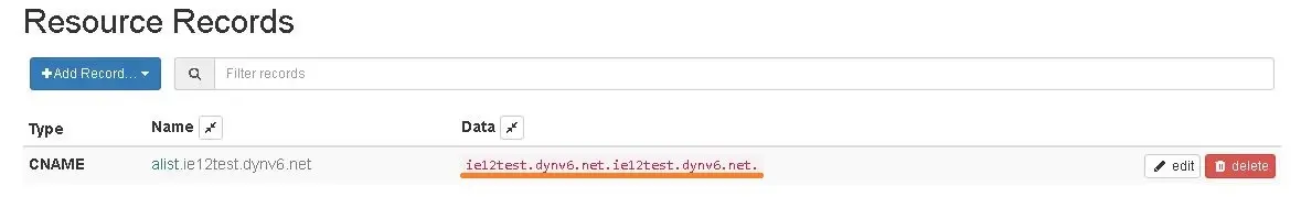 登录Dynv6 》 点击 My Zones 》 选择你的动态域名 》 添加CNAME记录