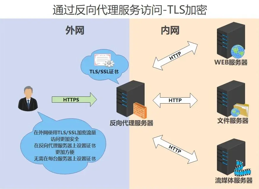 在家庭网络环境下使用反向代理主要有以下三点好处