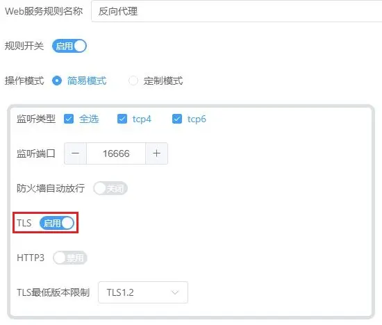 编辑反代规则 开启TLS开关