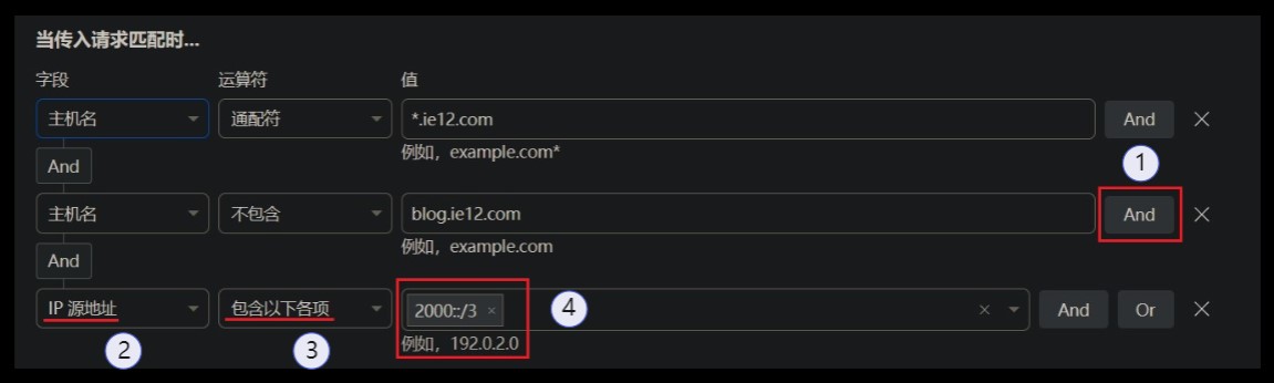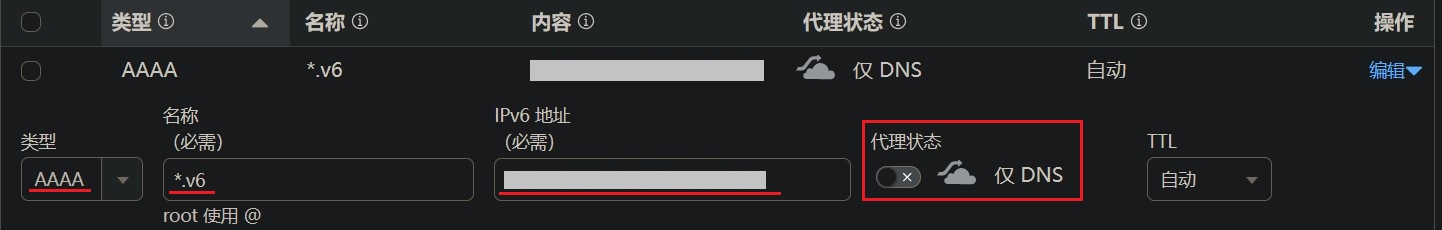 此外要设置DNS记录将这个新的子域名(泛域名)指向源服务器的IPv6地址
