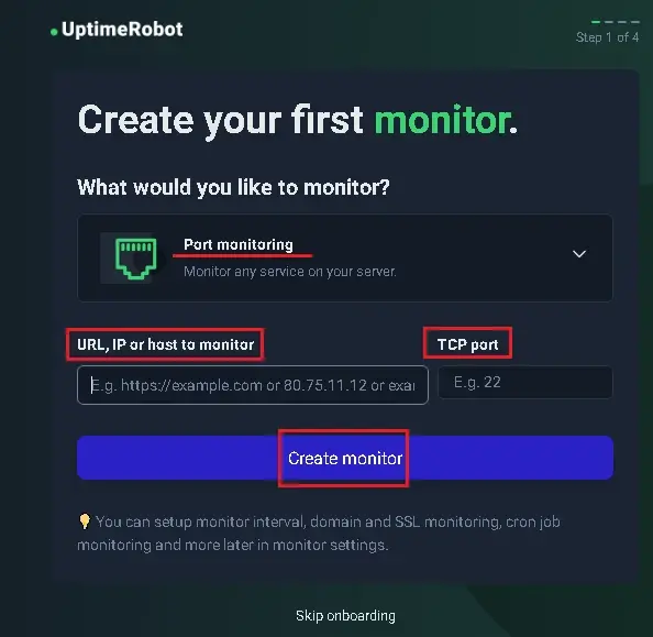 选择监控类型 填写IP和端口 建议取消勾选下面的邮件提醒
