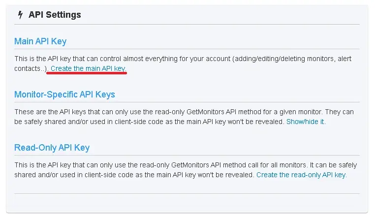 请求方法:https://uptimerobot.com/api/#getMonitorsWrap