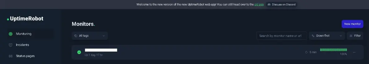 之所以选择UptimeRobot是因为其提供的更新AP可以使我们可以轻松的更新监视器端口