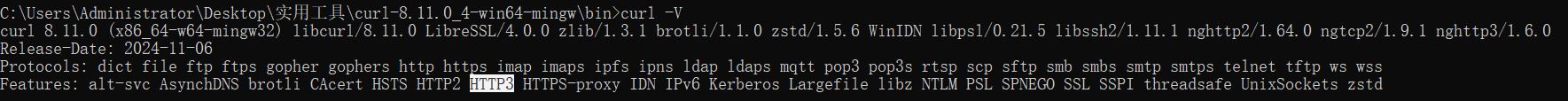 Windows中预装的curl可能并不支持HTTP3 下载curl:链接