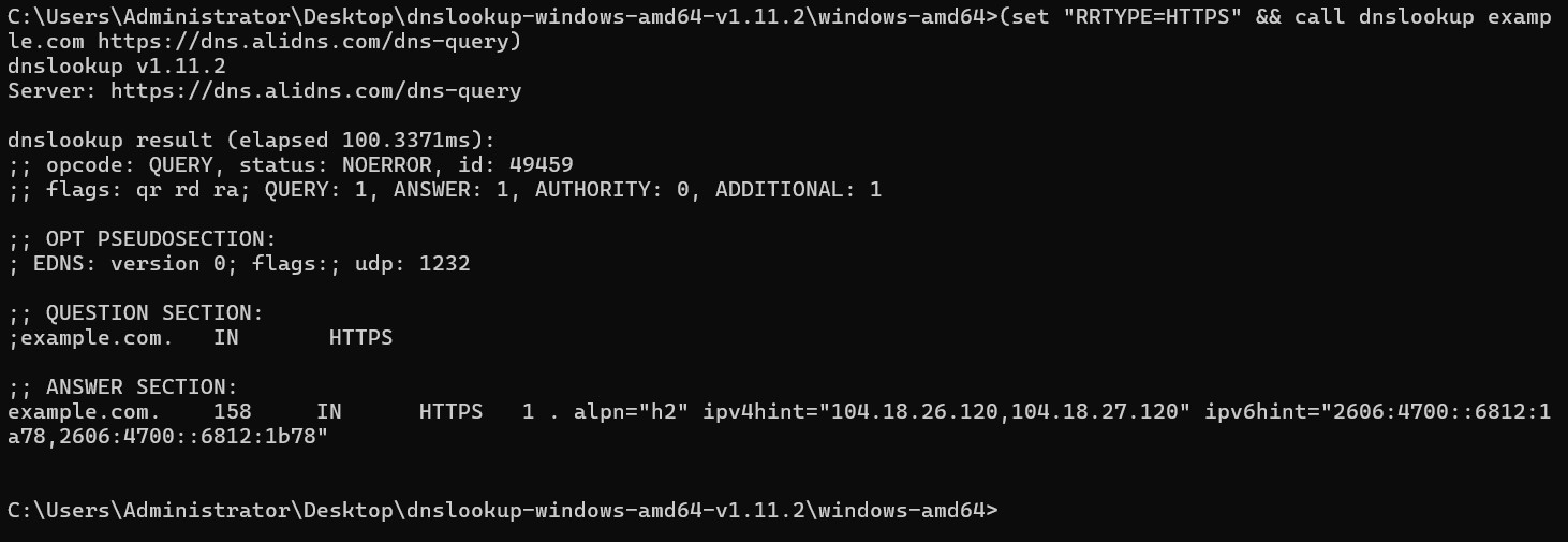 (set "RRTYPE=HTTPS" && call dnslookup example.com https://dns.alidns.com/dns-query)