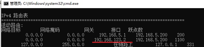 route add 0.0.0.0 mask 0.0.0.0 192.168.123.2 metric 1000