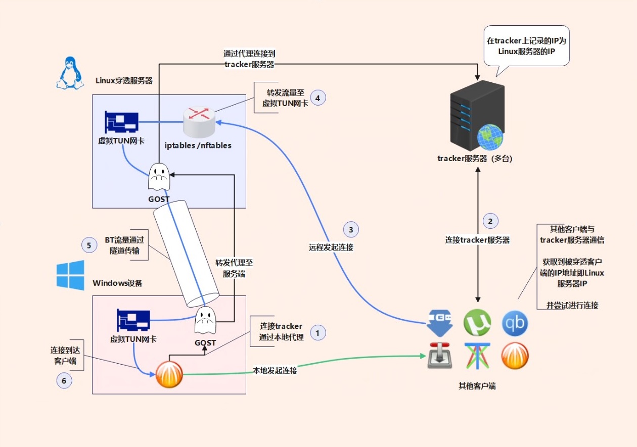 在本教程将使用gost替代frp来为bt客户端提供穿透