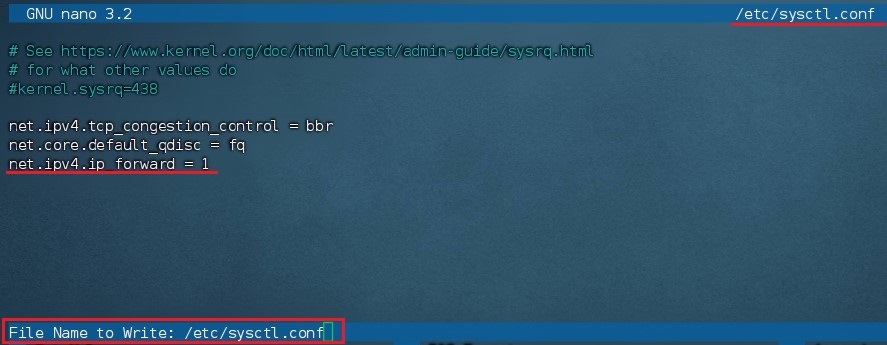写入 net.ipv4.ip_forward = 1 以开启转发功能