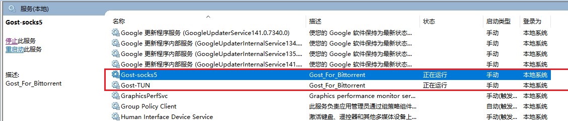 并将隧道功能和socks5功能所对应的批处理分别注册成服务