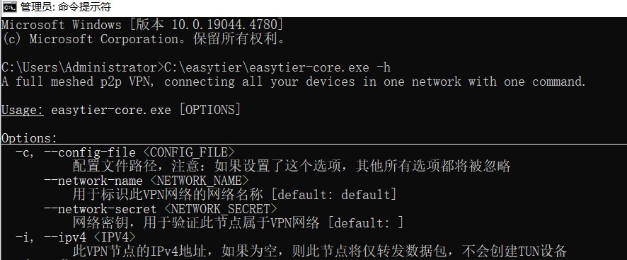 更好的方法是先使用参数启动 EasyTier 其会在控制台窗口中