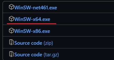 例如使用的是WinSW-x64.exe 那要创建的配置文件名即为WinSW-x64.xml